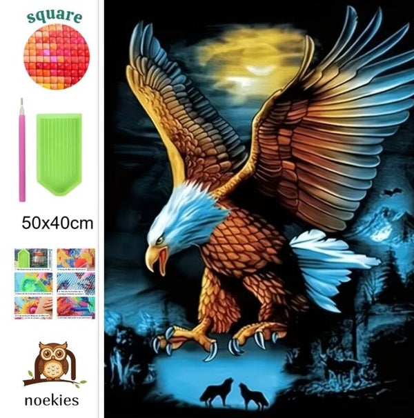 nr 8 Diamond Painting roofvogel 50x40cm (vierkant)