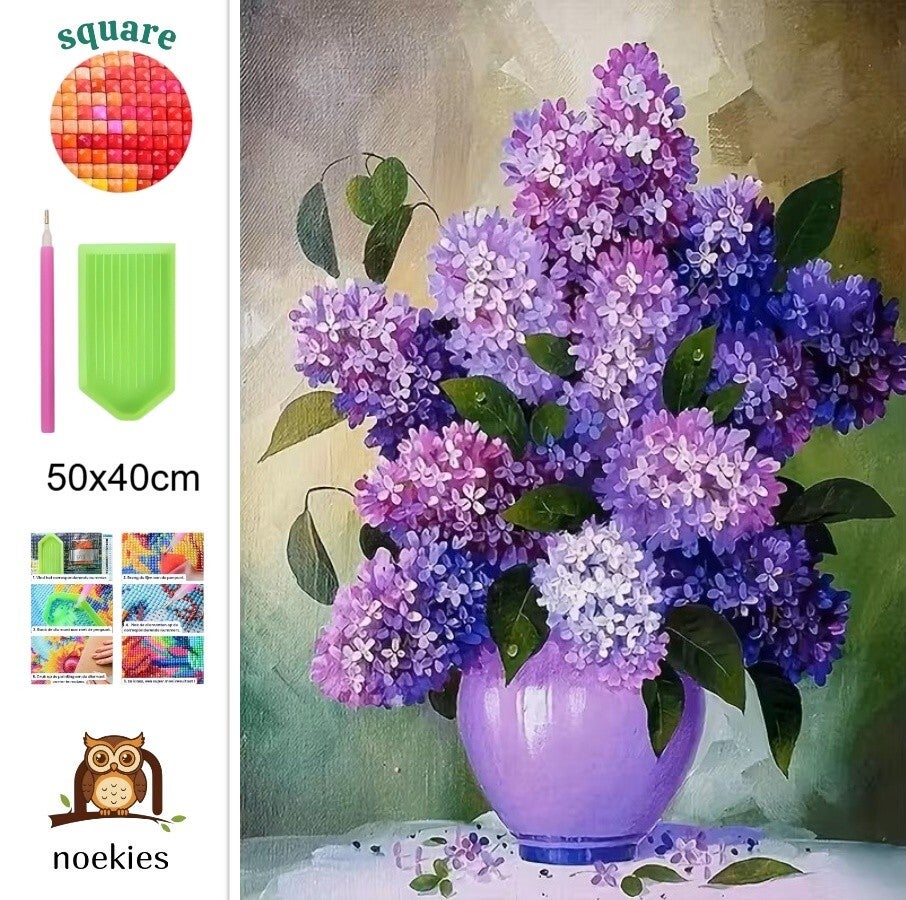 nr 11 Diamond Painting vaas bloemen lila paars 50x40cm (vierkant)