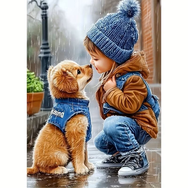Mooie Diamond Painting Jongen neus aan neus met hondje. 50x40cm. Vierkante Steentjes. 50x40cm. Het stevige canvas van hoge kwaliteit is voorbedrukt en voorzien van een plaklaag, zodat je eenvoudig aan de slag kunt. De kleuren zijn helder, de symbolen goed leesbaar en alle benodigde accessoires zijn inbegrepen: van de steentjes tot de pen, wax en tray. Perfect om zelf te maken of cadeau te doen aan iemand die houdt van creatief bezig zijn! Het doek zelf is 50x40cm en het veld waar de steentjes opgeplakt moeten worden is 45x35cm.