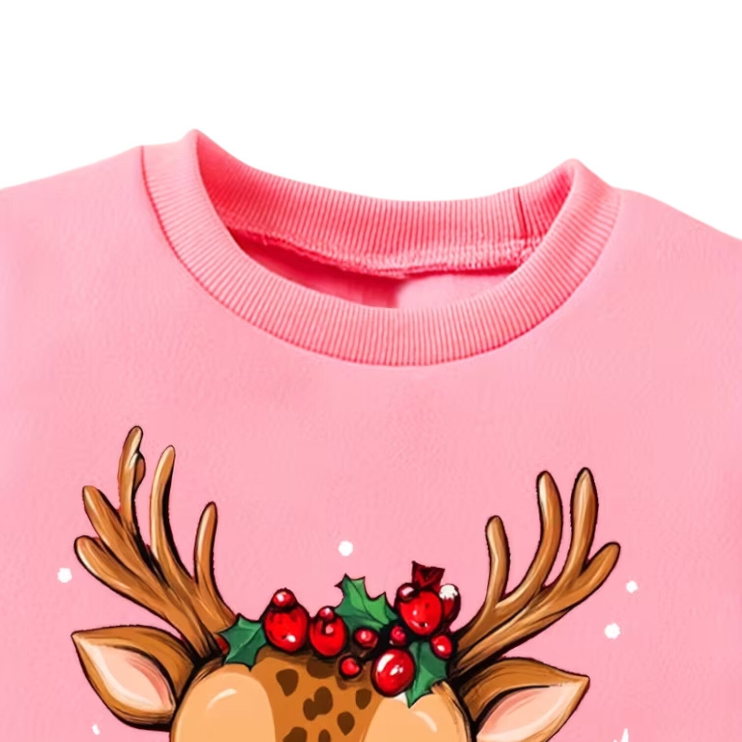 Roze Kersttrui met Eland - Maat 104 (4Y)