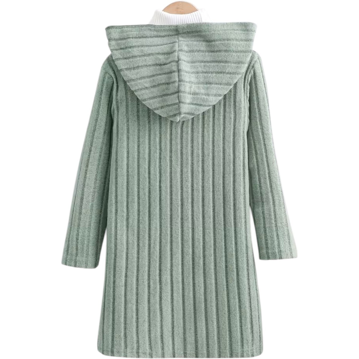Nieuw, open vestje met ribbelpatroon en capuchon. Gemaakt van een aangenaam zachte stof (95% polyester, 5% spandex). Mooie grijsgroene kleur. Maat 104 (3/4 jaar). Op werkdagen voor 15:00 besteld, dezelfde dag verzonden!
