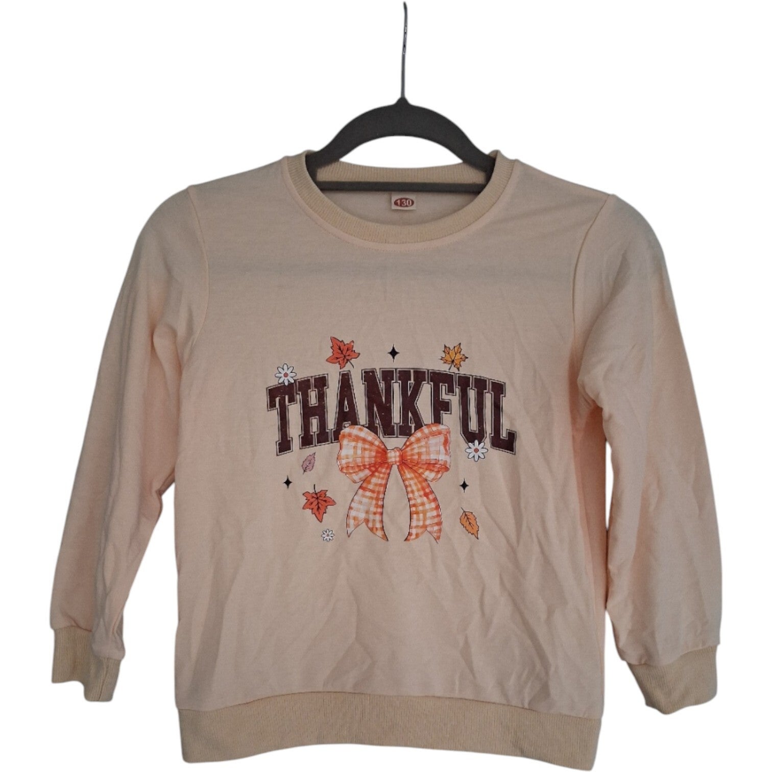 Nieuw beige shirt maat 128/130 'Thankful' print
