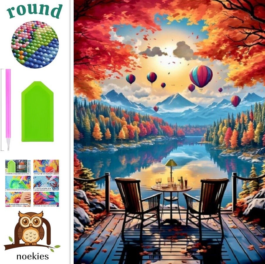 Deze complete diamond painting set bevat alles wat nodig is om direct aan de slag te gaan. De set bestaat uit een canvas met het herfstlandschap, ronde diamantjes, een "ticky pen" voor het oppakken van de diamantjes, een dienblad en lijm. De diamantjes zijn rond van vorm en er wordt 30% meer dan nodig meegeleverd. De instructies voor het maken van de diamond painting zijn eenvoudig te volgen: vind het corresponderende nummer, breng de lijm aan op de penpunt, raak de diamant aan met de penpunt, plak de diamanten op de corresponderende nummers, druk op de painting om de diamant vast te maken, en het resultaat is een super mooi kunstwerk. Mooie Diamond Painting Luchtballonnen. Deze Diamond Painting is 50x40cm. Painting vlak is 45x35cm. Ronde diamantjes. Waarom kiezen voor Diamond Painting? Eenvoudig & Leuk: Geen ervaring nodig, gewoon de steentjes op de juiste plek plaatsen. Stressverlagend: Een ontspannende hobby die helpt om te focussen en tot rust te komen. Gedetailleerde Afbeeldingen: Levendige kleuren en sprankelende diamanten zorgen voor een verbluffend eindresultaat. Compleet Pakket: Inclusief canvas met plaklaag, steentjes, pen en wax – alles wat je nodig hebt om direct te beginnen. Zowel volwassenen als kinderen kunnen genieten van deze noekies .com Diamond Painting sets. Een leuke activiteit voor het hele gezin! Het canvas is van hoogwaardige kwaliteit en zorgt ervoor dat je kunstwerk lang mooi blijft. Met Diamond Painting van noekies .com kun je eindeloos creatief bezig zijn en jouw eigen kunstwerk maken. Snelle verzending Wil je snel aan jou nieuwe kunstwerk van noekies .com beginnen. We verzenden elke werkdag, Zodat je vaak de volgende dag of binnen 2 werkdagen kan beginnen. Heb je vragen? Stuur een berichtje!
