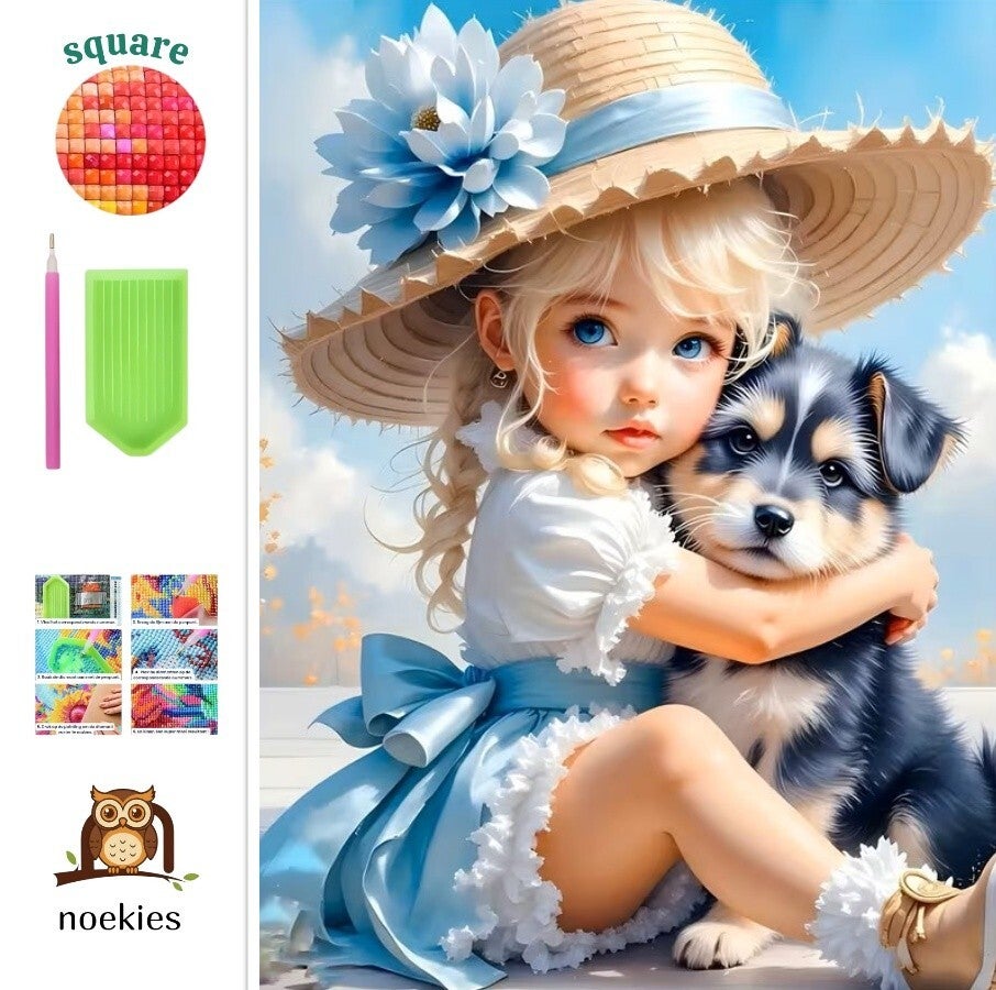nr 39 Diamond painting meisje met hondje 50x40cm (vierkant)