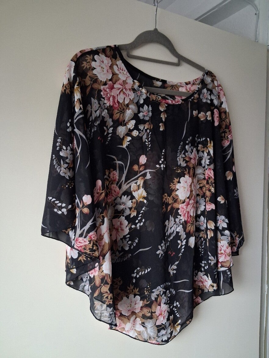 Zo goed als nieuw. Wijde doorschijnende poncho shirt bloemen. Leuk te dragen over badkleding of met een top eronder. maat XXL