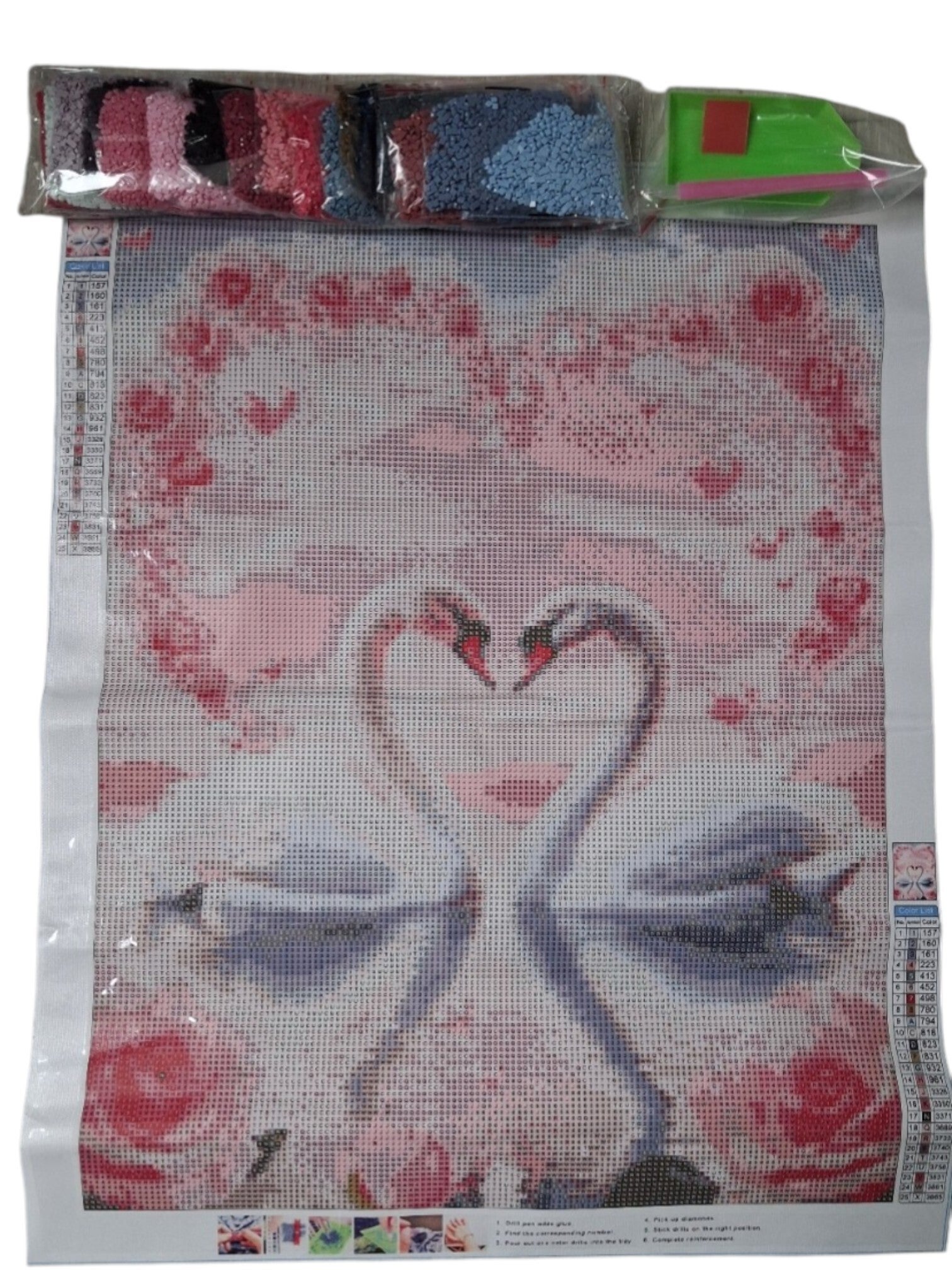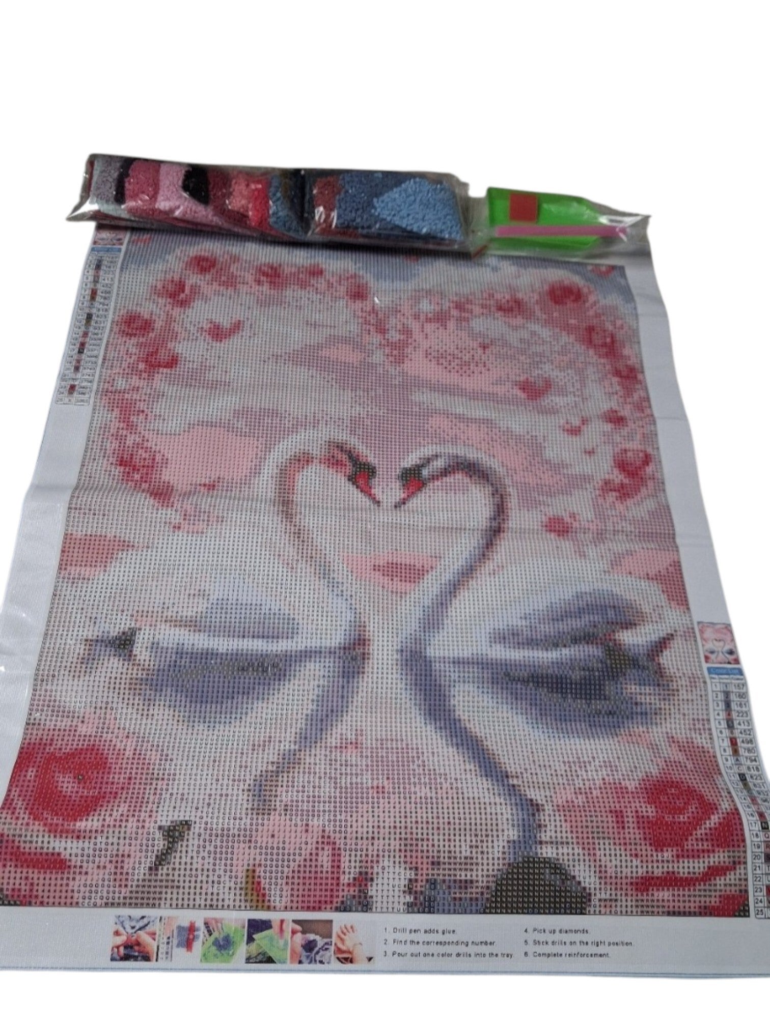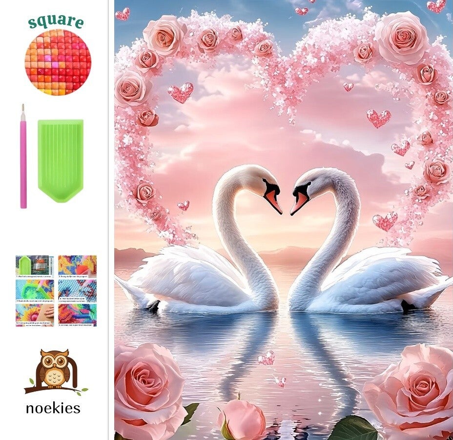 nr 48 Diamond Painting Zwanen in hart 50x40cm (vierkant)