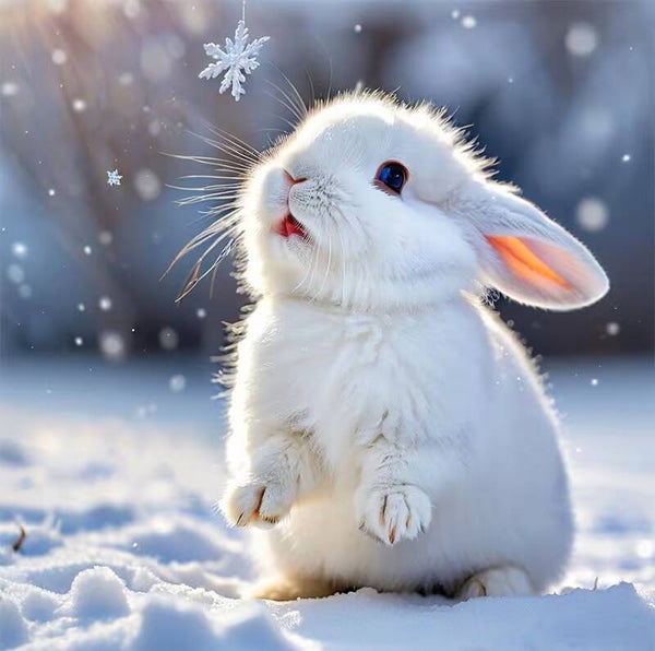 nr 594 Diamond Painting konijntje sneeuw 40x40cm (rond)