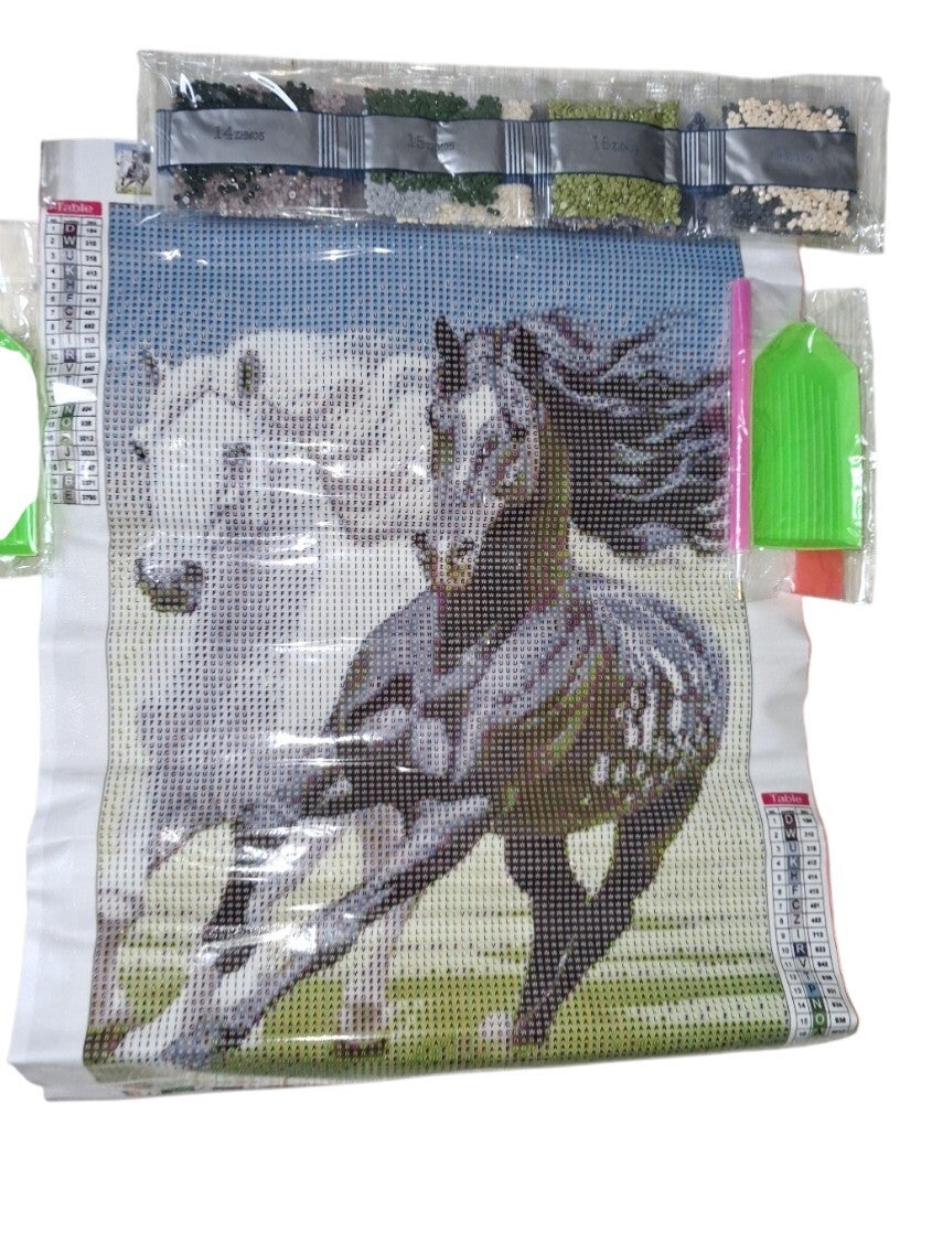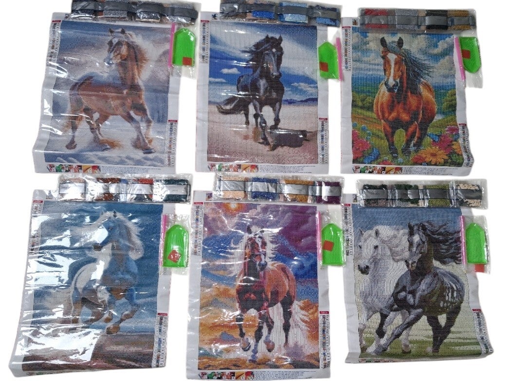 6x Diamond Paintings paarden 40x30cm (rond)