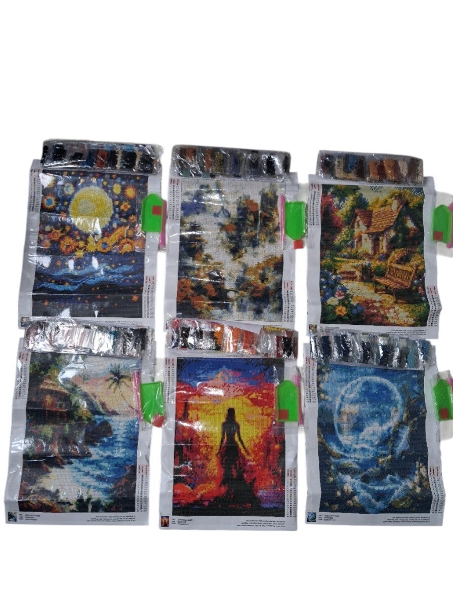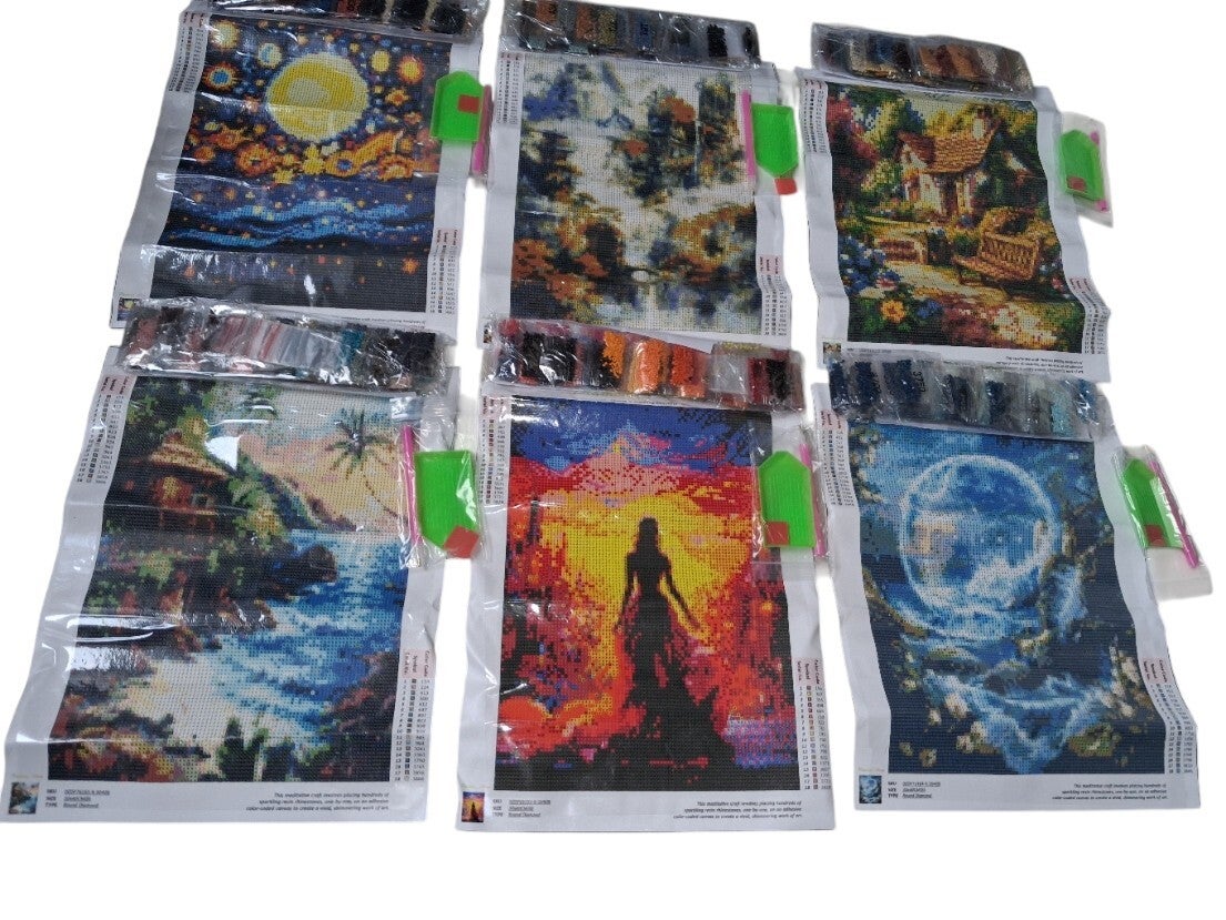 6x Diamond Paintings natuur en landschap 40x30cm (rond)