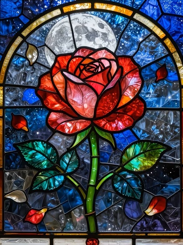 Diamond Painting roos in glas en lood 50x40cm (vierkant)