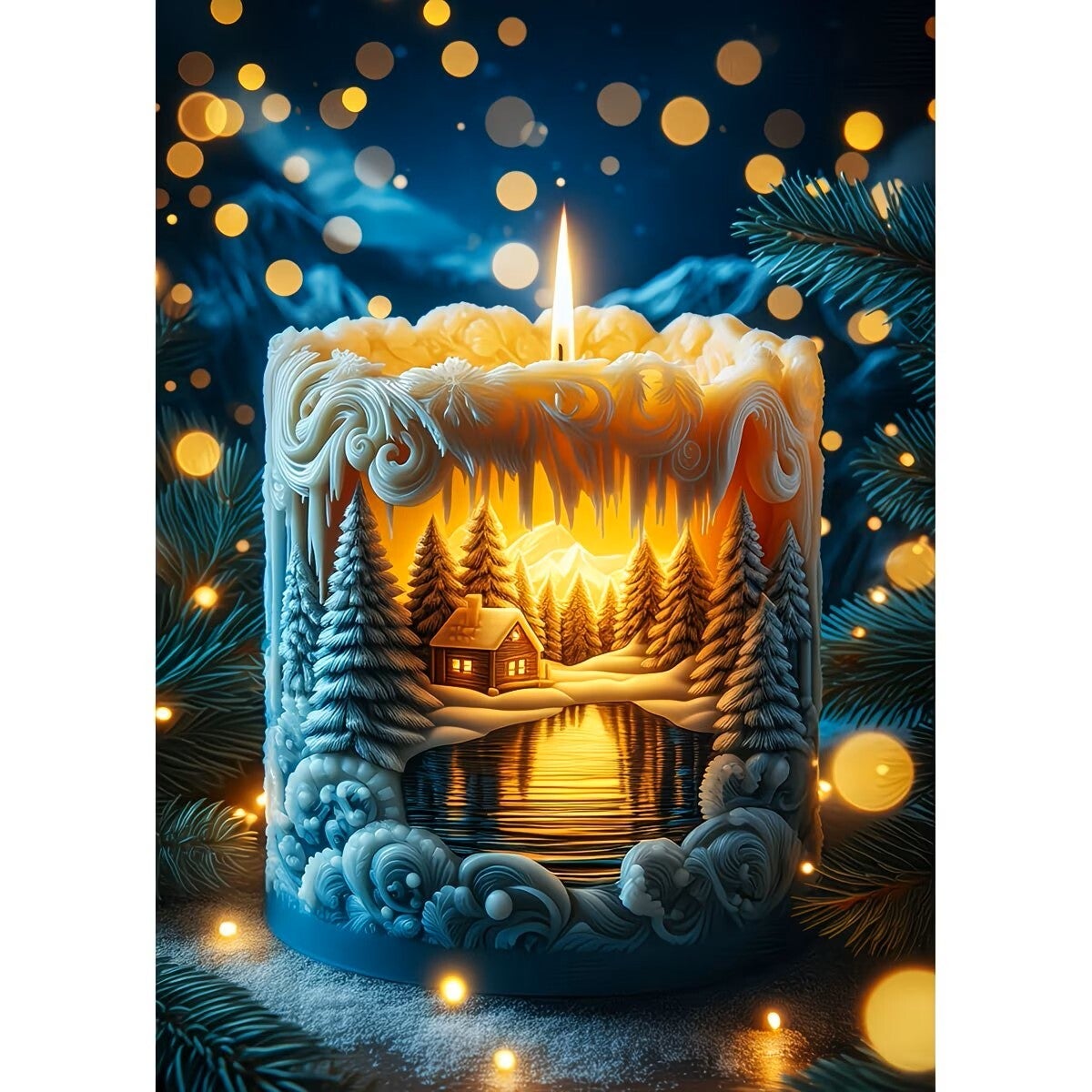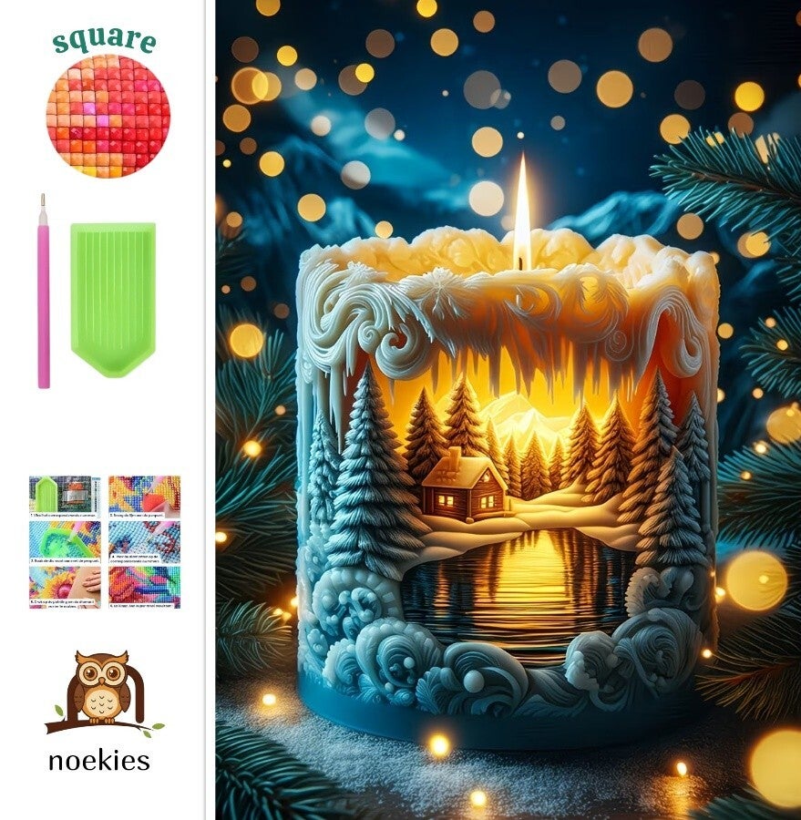 nr 70 Diamond Painting winter kaars met landschap 50x40cm (vierkant)