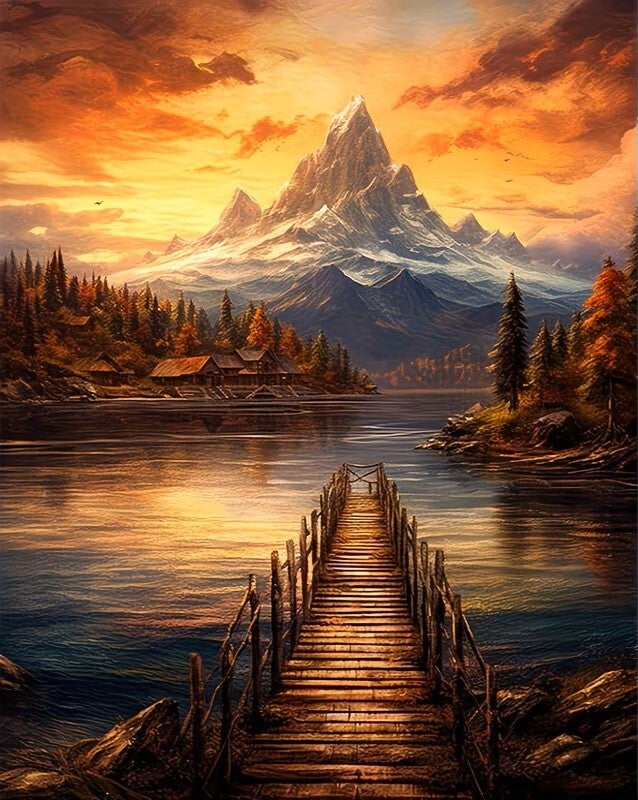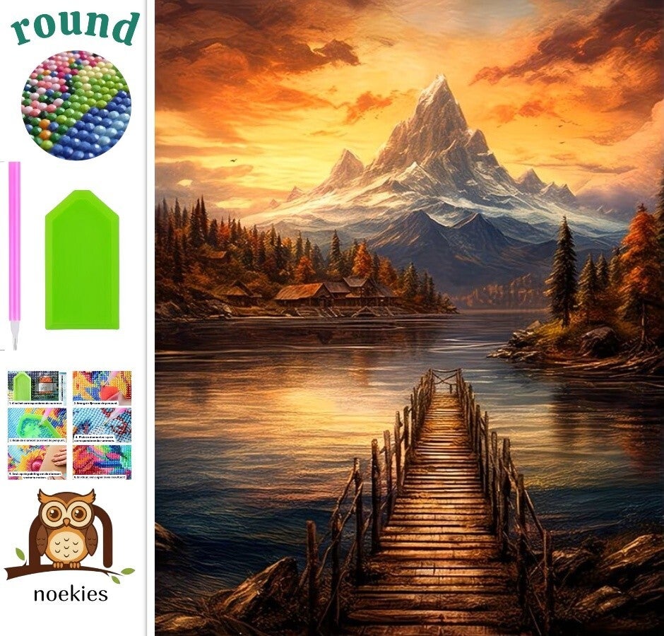 Deze Diamond Painting set bevat alles wat nodig is om direct aan de slag te gaan. De set bestaat uit een canvas, een "ticky pen", een dienblad, lijm en voldoende diamantjes (+30% meer dan nodig). De diamantjes zijn rond van vorm. Mooie diamond painting steiger met berg landschap. Deze Diamond Painting is 50x40cm. Painting vlak is 45x35cm. Ronde diamantjes. Waarom kiezen voor Diamond Painting? Eenvoudig & Leuk: Geen ervaring nodig, gewoon de steentjes op de juiste plek plaatsen. Stressverlagend: Een ontspannende hobby die helpt om te focussen en tot rust te komen. Gedetailleerde Afbeeldingen: Levendige kleuren en sprankelende diamanten zorgen voor een verbluffend eindresultaat. Compleet Pakket: Inclusief canvas met plaklaag, steentjes, pen en wax – alles wat je nodig hebt om direct te beginnen. Zowel volwassenen als kinderen kunnen genieten van deze noekies .com Diamond Painting sets. Een leuke activiteit voor het hele gezin! Het canvas is van hoogwaardige kwaliteit en zorgt ervoor dat je kunstwerk lang mooi blijft. Met Diamond Painting van noekies .com kun je eindeloos creatief bezig zijn en jouw eigen kunstwerk maken. Snelle verzending Wil je snel aan jou nieuwe kunstwerk van noekies .com beginnen. We verzenden elke werkdag, Zodat je vaak de volgende dag of binnen 2 werkdagen kan beginnen. Heb je vragen? Stuur een berichtje!