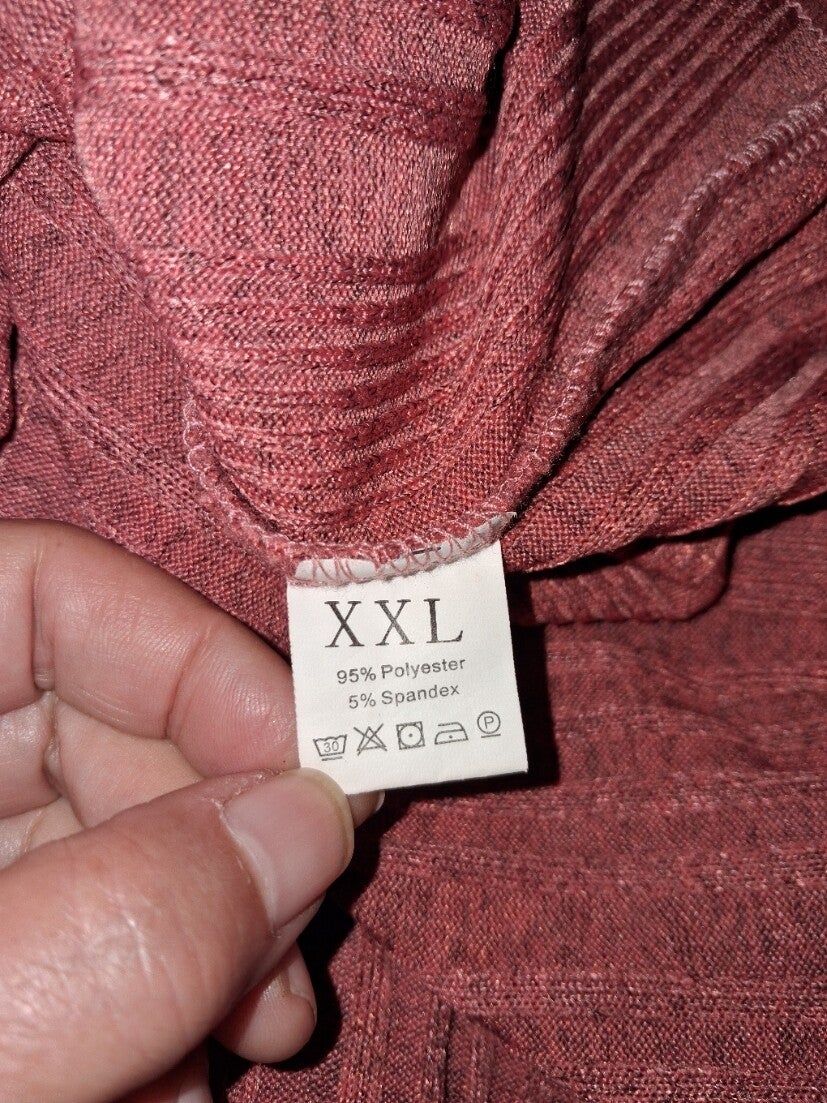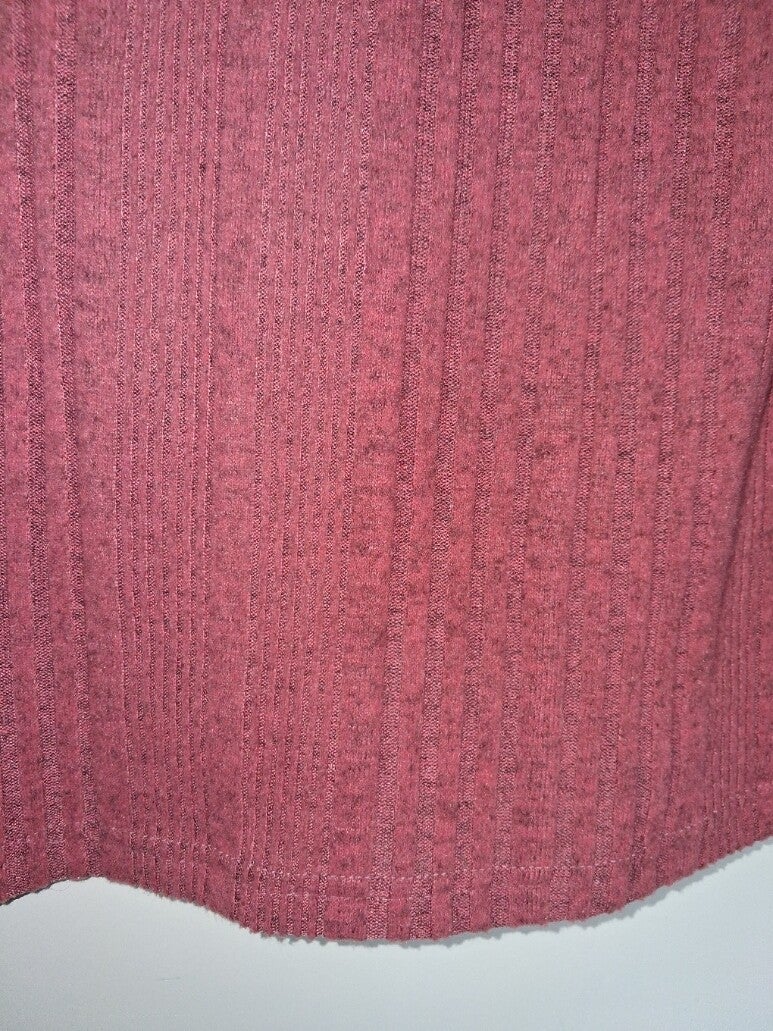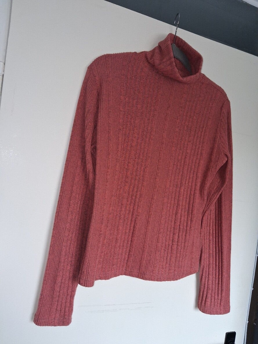 Deze trui heeft een colkraag en lange mouwen. De trui heeft een geribbelde textuur en een effen patroon. De onderkant van de trui en de mouwen zijn afgewerkt met een eenvoudige zoom. Maat XXL.