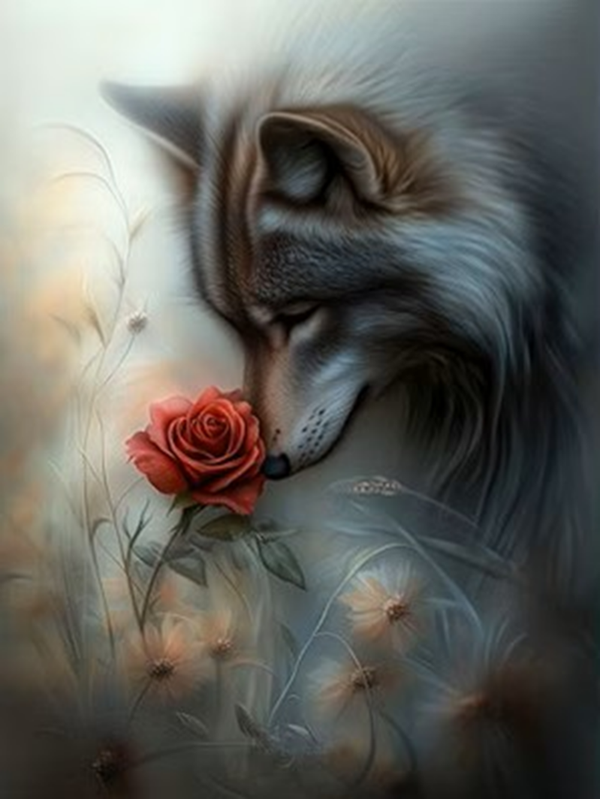 nr 398 Diamond Painting wolf roos 30x20cm (rond)