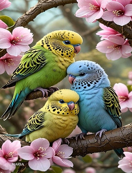 nr 420 Diamond Painting 3 vogeltjes 30x20cm (rond)